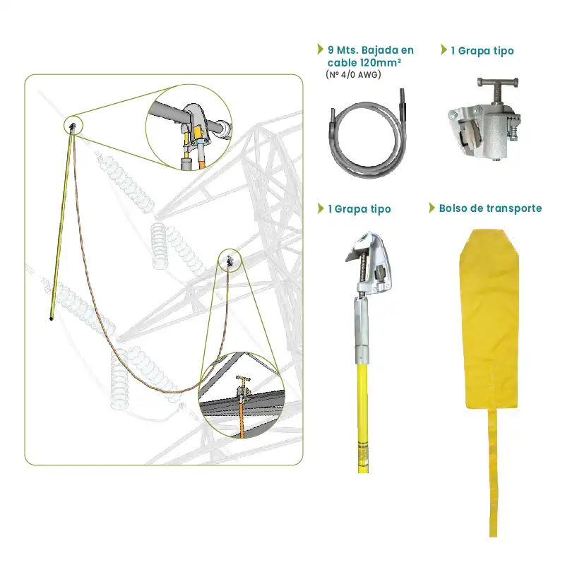 9 Mts. cable de bajada, aluminio extra flexible con chaqueta transparente 120mm² (Nº 4/0 AWG).