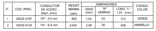 | Material: | Alambre de acero acero alto carbono SAE 1045-1070 galv. clase B conf. ASTM A 475 |